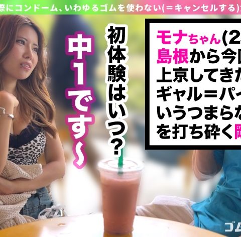 あなたは『ゴムキャンセル界隈』をご存じだろうか?エッチをする際にコンドーム、いわゆるゴムを使わない(=キャンセルする)女たちが存在するのだ!そんな界隈から、本日はモナちゃんに来てもらいました♪今回同行してもらった男優の大ファンだと言い、インタビュー中も終始メロついちゃっていましたw憧れのチ●コを目の前にして、夢中でしゃぶりマン穴ヒクヒクさせて発情中!潮吹きまくりで一面びしゃびしゃです!ゴム無しで生ハメ開始!ハメ潮溢れさせてイキまくりwご褒美精液を大量中出し♪余韻たっぷりの深イキ痙攣しちゃいました!