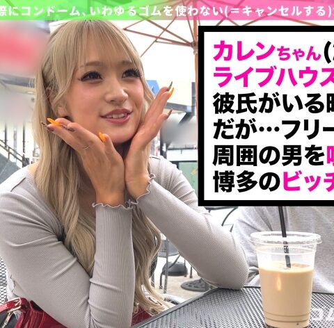 あなたは『ゴムキャンセル界隈』をご存じだろうか?エッチをする際にコンドーム、いわゆるゴムを使わない(=キャンセルする)女たちが存在するのだ!そんな界隈から、本日はカレンちゃんに来てもらいました♪博多弁が素敵な金髪ギャルで、もちろん超ヤリマンのゴム無し中出し専用マ●コ!ピルも常飲しているようなので心置きなくハメられますね♪敏感マ●コからの潮吹きが止まらない!手マンとフェラを同時進行で擬似セックス!?中に出した後は水着に着替えて2回戦!絶叫喘ぎギャルの中に大量中出し!!